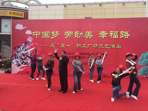 4月26日下午,由海陵区总工会主办,城南街道工会、文化站承办的庆“五一”职工文化广场活动在世纪联华广场举行。来自城南街道辖区基层企业工会、社区工会选送的十个精彩节目,赢得了400多名现场观看职工的阵阵掌声。