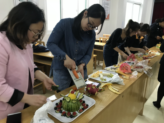 活动现场气氛热烈,职工们尽情发挥创意,精雕细琢。他们或切、或拼、或雕、或挖,忙得不亦乐乎。圣女果、橙子、草莓、黄瓜、苹果、香蕉等各式水果,在选手们的创意和精细的刀工下被改造成片、丁、丝、块等形状,拼放成各种图案。作品色彩艳丽、精美绝伦。经过半个小时的创作,一盘盘形态各异、独具创意的水果拼盘在一双双巧手下诞生了,每个作品都有鲜明的主题和寓意:“春华秋实”、“珠联璧合”、“欣欣向荣”、“夏日缤纷”、“少女之梦”……无论从构思到造型设计都独具匠心,令人眼前一亮。 比赛在欢乐的气氛中圆满结束,最终评选出“无限创意奖、美轮美奂奖、心灵手巧奖”等奖项。