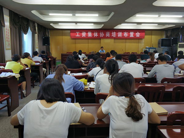 城西街道工会在办事处南四楼东会议室举办了2018年工资集体协商培训布置会,来自全街道的工会负责人、企业工会负责人近70人参加。进一步推进工资集体协商工作,提高基层工会干部业务水平。