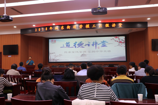 党的十九大报告指出,要“建设知识型、技能型、创新型劳动者大军,弘扬劳模精神和工匠精神,营造劳动光荣的社会风尚和精益求精的敬业风气”。为深入贯彻党的十九大精神,2018年5月26日,城东街道办事处在街道六楼开展“劳模工匠微讲堂”活动。参加本次活动有街道全体工作人员及各村、社区干部。